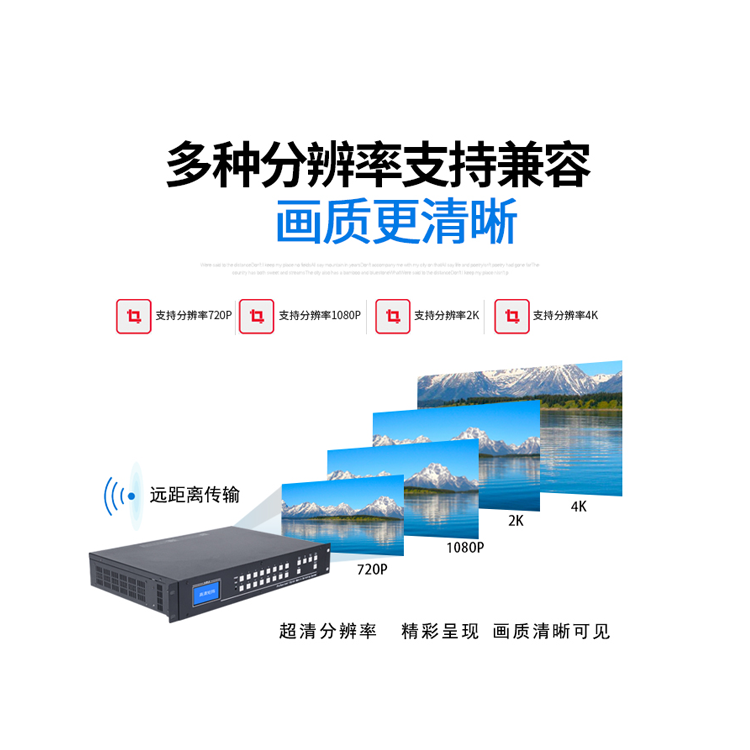二.高清:全数字零压缩数字切换 传输解析度3840*2160@30Hz UHD超高清数字化像素支持无信号显示蓝屏,显示无信号OSD字符,可能看到这些文字,您还是没有理解这个高清的意思,那这样来打个比方吧,一个高度近视2500度坐在教室后面的学生,突然得到魔法降临给他一个5.0眼睛看到黑板上写的蝇头小字的感觉,是不是倍爽 绝对的清晰。