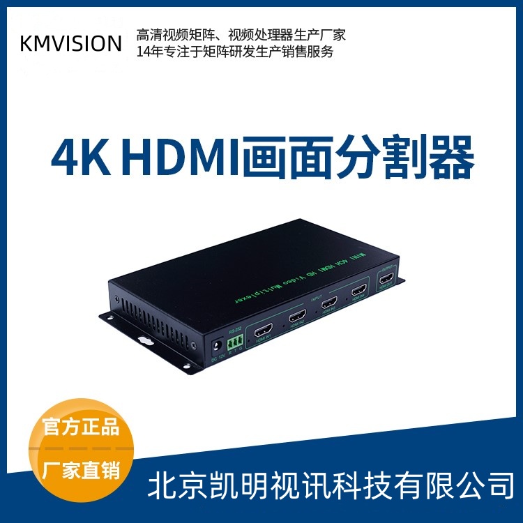 迷你型高清四画面分割器还有哪些优点呢?首先,画面分割器采用纯硬件结构,无操作系统,不会存在系统崩溃、病毒感染等风险,开机时间小于10秒。其次,作为一个独立的产品,所有的输入和输出均做在同一块PCB上,具有更高的性价比和更高的可能性。再次,核心部件采用先进的专业视频图像处理芯片,每个输入通道能实现1920*1080@60HZ信号的实时处理,不会出现图像丢帧、延迟等现象。|凯明视讯提供不同的输入信号接口形式,如HDMI、DVI、VGA、SDI高清四画面分割器可供用户使用,简便可靠。