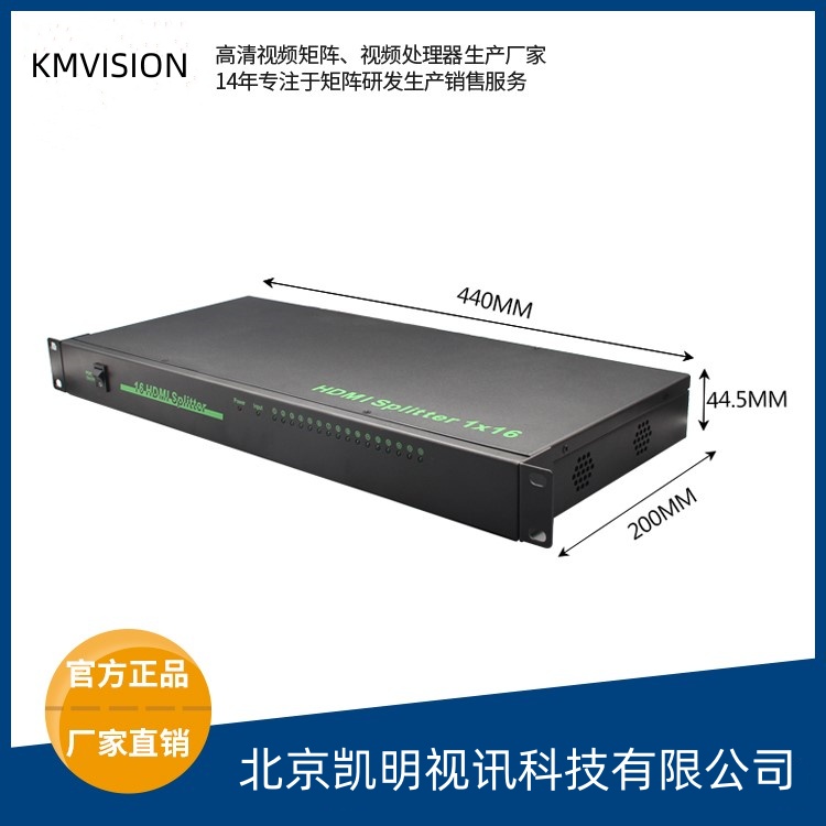 在4x4的液晶拼接墙显示工程项目中,用户能首先确定好有几个输入信号就可以选购到合理的1进16出高清HDMI分配器了,|凯明视讯公司是专业研发生产高清分配器、矩阵切换器、高清解码器、拼接处理器的厂家。14年的的继往开来,我们已经成为国内外知名品牌,产品广泛用于各种音视频会议系统、安防监控系统工程项目中。