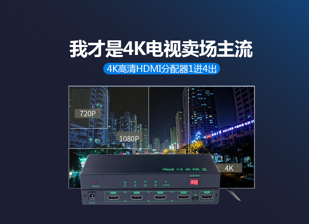 高清HDMI分配器4K版是我公司在前期HDMI分配器产品的基础上,开发的新一代的HDMI分配器。它较之前一代分配器,在市场应用过程中得到检测,做了多方面的完善。