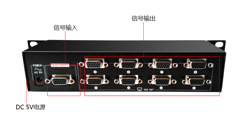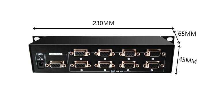 我公司生产的VGA信号分配器,是一款广播级高清的VGA视频分配器。它采用高性能广播级宽带视频大功率模拟集成电路,多极点频率补偿及增益提升技术,可以将某一路高解晰度的计算机信号分配到多台显示终端,允许使用标准的VGA电缆直接与计算机视频卡连接。设备自带信号延长,长距离传输失真补偿技术,保证信号长距离传输高保真输出;无拖尾无图像变暗等现象;传输中能够起到简单的分配放大作用,能够显示高清分辨率1920×1080P。它可应用于显示器产品的展示、带VGA输入接口的电视机的展示,多媒体教室、电子公告屏、广告机、教室、培训设施和会议室等VGA视频分配场所。