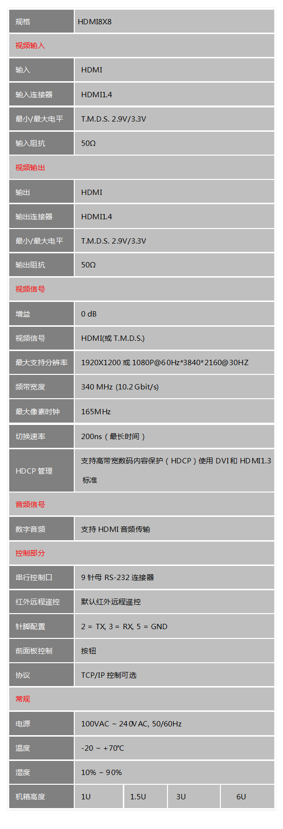 HDMI 4K高清多格式混插无缝切换矩阵是一款高性能的高清视频信号交换设备,最多可支持8路信号输入,8路信号输出,采用模块式及后插板式结构。该产品支持多种视频格式信号输入输出,可以用于多个高清数字视频信号及模拟视频信号的输入、输出交换,任意一路信号的输出可以选择任意一路信号源而不会干扰其它输出,图像高保真输出。